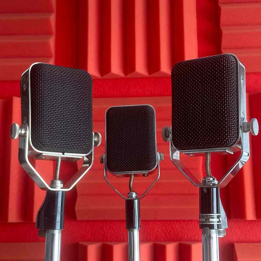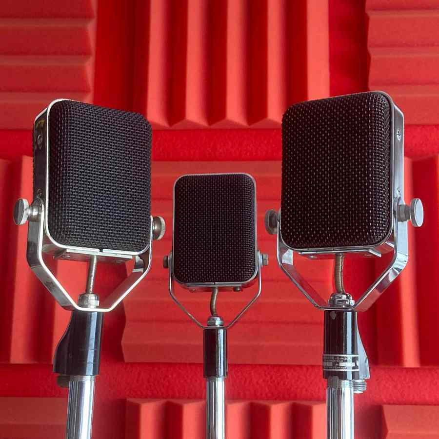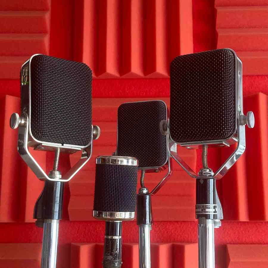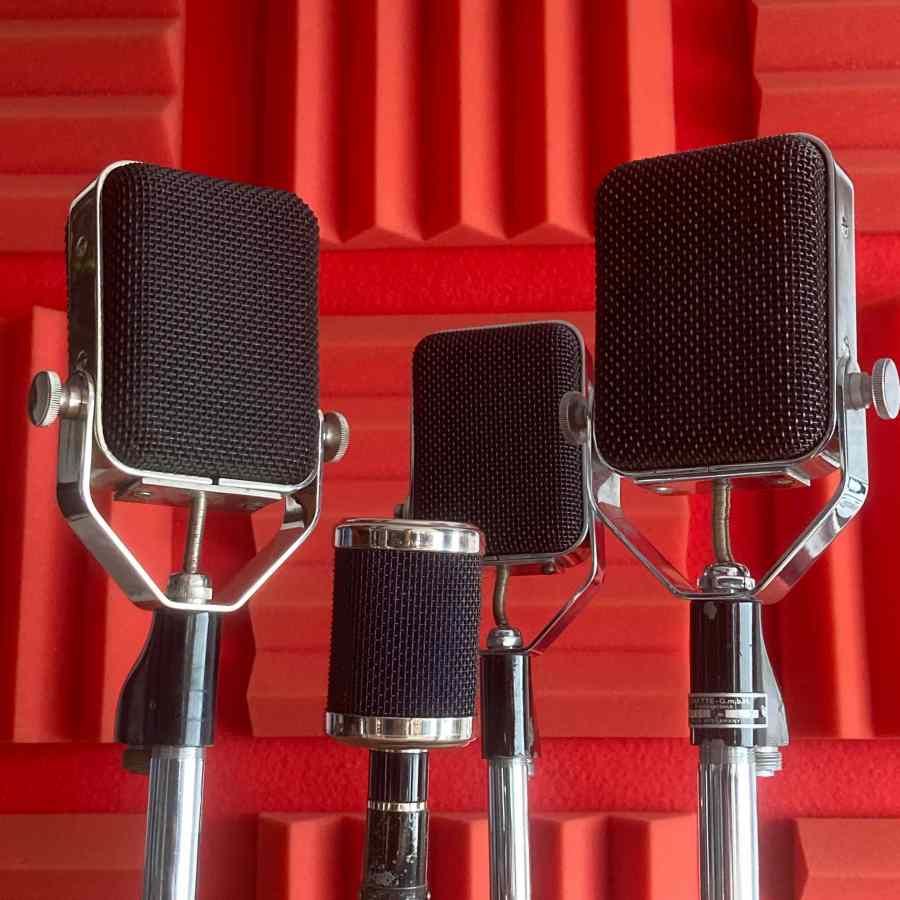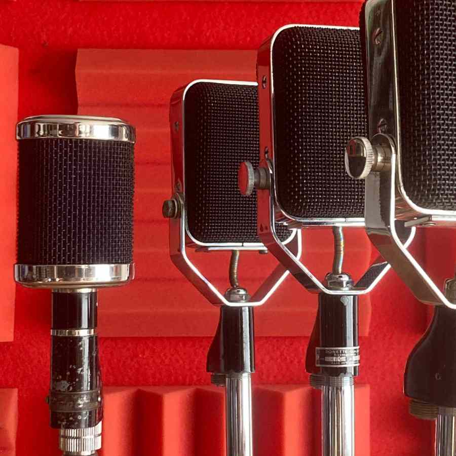 Micrófonos vintage de estudio para rodajes, fotografía y ambientación musical. Perfectos para escenas técnicas, biopics y recreaciones de estudios clásicos. + Micros + Sonido