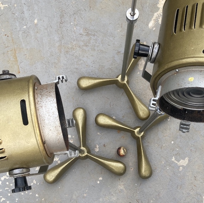 Trípode dorado de iluminación estilo años 60s, una pieza retro que aporta glamour y personalidad a videoclips, rodajes y sesiones de fotos